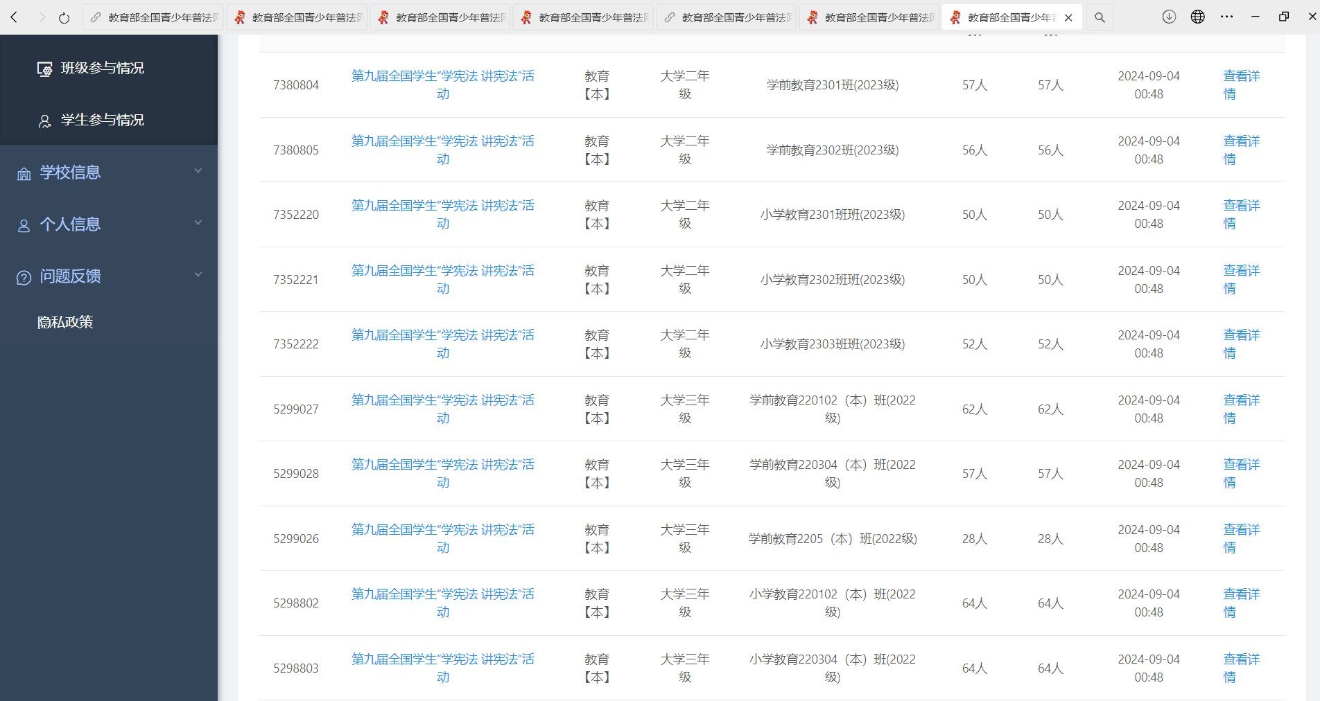交流分享,拓展活动影响。开学后,各学院以班级为单位对“五个一”打卡活动进行总结交流,召开辅导员会专题汇报,学工部检查汇总,今年虽系首次开展打卡活动,但由于领导重视,主题鲜明,辅导员认真负责,全体学生积极参与,整个活动成果颇丰:一是加深了对党的二十届三中全会精神的领会和理解,坚定了理想信念,强化了使命担当;二是增强了维护宪法、争做宪法卫士的行动自觉;三是明确了新学期学业规划和学习目标;四是养成了良好的阅读习惯,拓宽了知识面;五是在志愿服务和社会实践中得到锻炼和提高,受到师生和家长的普遍好评。