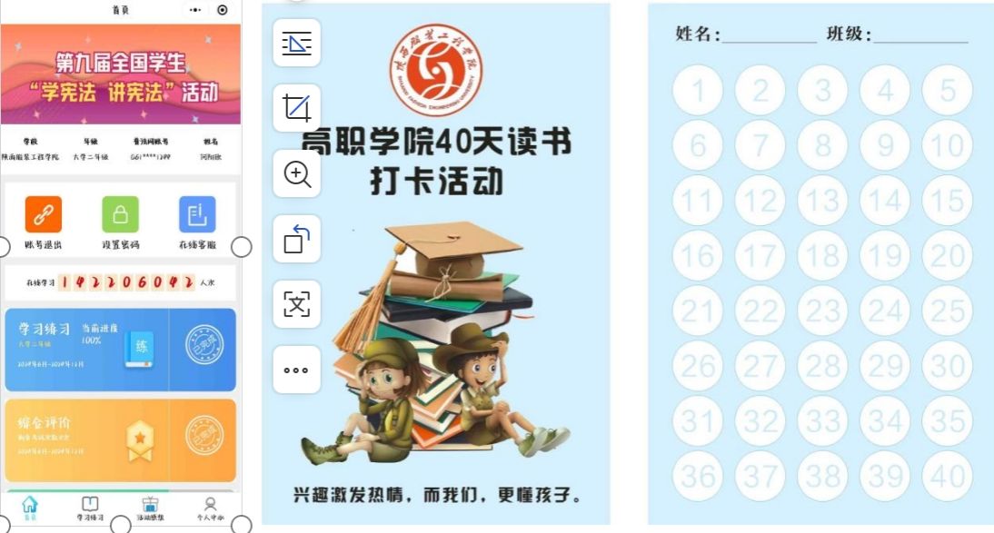 团学配合,提升打卡实效。在打卡活动中,学工部、校团委先后3次召开线上会议,强化检查督导;各学院通过党员、班团干部带头打卡,辅导员定期抽查打卡,学院分类通报打卡,强化落实,提升了打卡活动实效。教育学院党委组织三个学生党支部以“学思践悟强本领,凝心铸魂担使命”为主题,组织167名党员带领300余名班团干部和入党积极分子认真学习领会党的二十届三中全会精神,进一步增强了坚定不移听党话、跟党走的信念和决心,信息工程学院召开党员领学心得体会交流会;艺术设计学院组织全体学生参与学宪法讲宪法大学生综合评价答题活动,经济管理学院在制定新学期学业规划中组织专业教师对学生进行线上指导,服装学院组织各班召开了学业规划分享会,高职学院设计制作了“40天读书卡”、人均阅读5本书,健康学院学生志愿者在社区开展义诊服务,人均40小时。