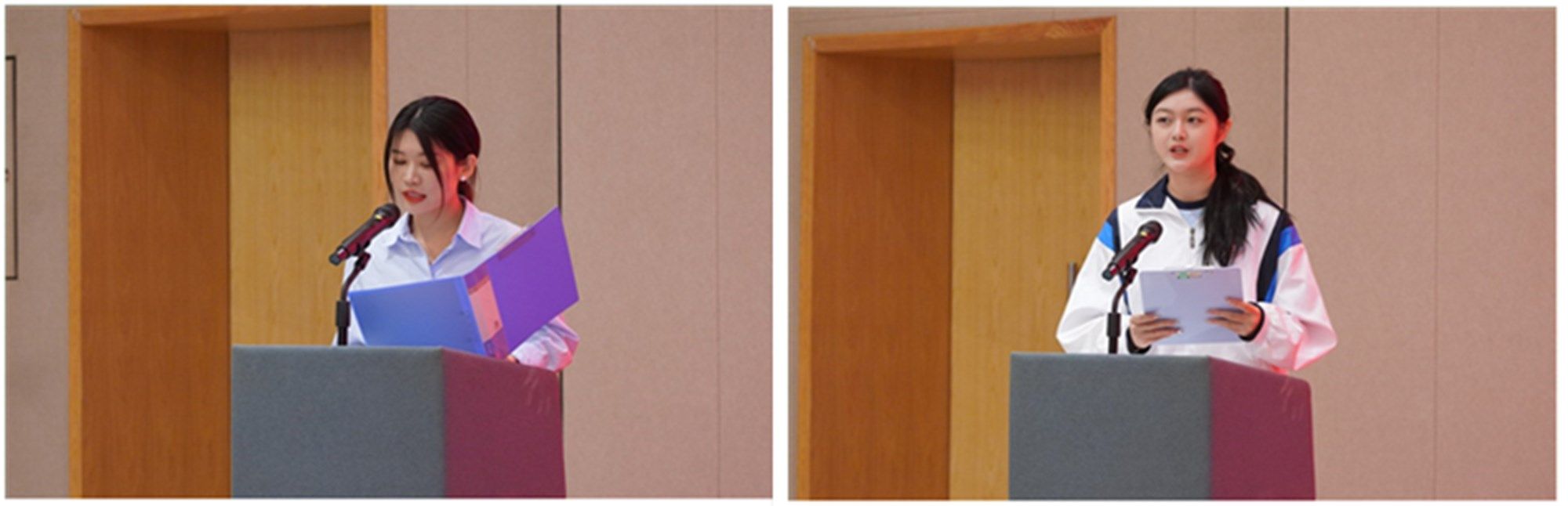 预备党员代表、服装学院表演专业2201班的王子怡发言,表示“将用实际行动践行入党誓言,履行党员义务,时时处处以党员的标准要求自己,做一名合格的党员”。党员代表、信息工程学院学生党支部书记王蒙发言,对预备党员表示祝贺和欢迎,并对参加第42期党校的入党积极分子寄予希望。