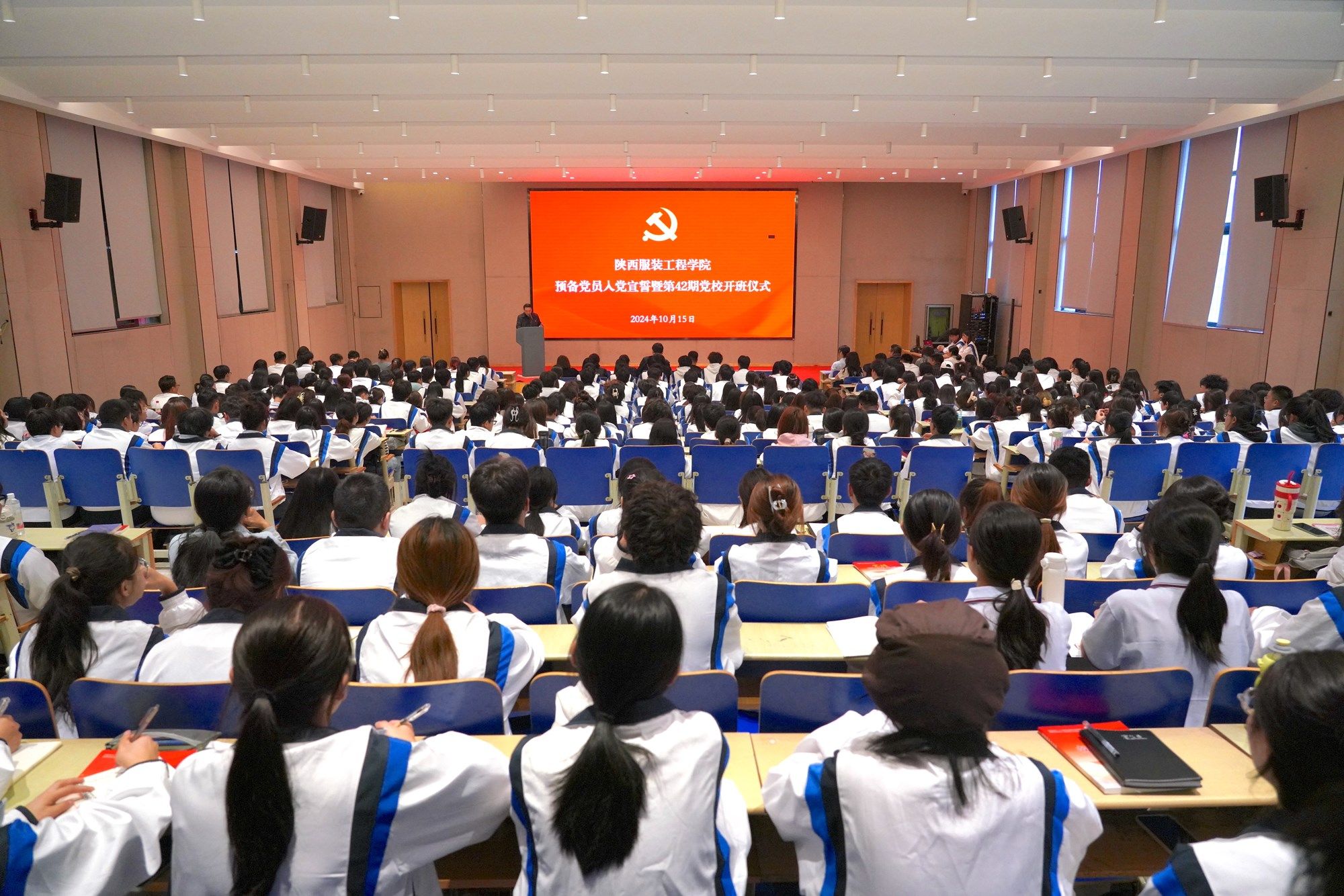 陕服新闻网讯(刘萍)10月15日下午,我校在E1-4报告厅举行预备党员入党宣誓暨第42期党校开班仪式。校党委副书记、纪委书记、党校校长刘继兵出席并讲话,党委组织部部长、党校副校长伍建成主持,党委工作部门负责人、各院党委(党总支、直属党支部)书记、机关各党支部书记、老党员代表、2024年上半年新接收预备党员、第42期党校各班主任及全体学员参加。