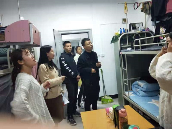 陕服新闻网讯(张蒙蒙)良好的生活环境是学习的基础。为保障学生宿舍的干净与整洁,同时加强学生对整理内务的规范程度,教育学院学生主管葛林艳老师带领所有辅导员以及学生会纪检部同学于11月15日晚自习对我院学生宿舍进行了一次突击检查。
