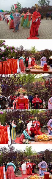 陕西服装工程学院多年来弘扬中华传统服装精粹,已成为学校服装学院的特色。这天乾县大唐牡丹园花开惊艳,正如唐朝诗人刘禹锡在诗中描述的那样“牡丹花品冠群芳,况是期间更有王。四色变而成百色,百般颜色百般香”。当目睹秀丽的陕西服装工程学院100多名身穿汉服的学生漫步在盛开的牡丹中,你就会发出感叹:汉服显韵味,花美人更美。可以说陕西服装工程学院汉服巡演把古典、含蓄、轻盈、飘逸的汉服之美体现的淋漓尽致,成为这次乾县第四届大唐牡丹文化旅游节最为抢眼的亮点。