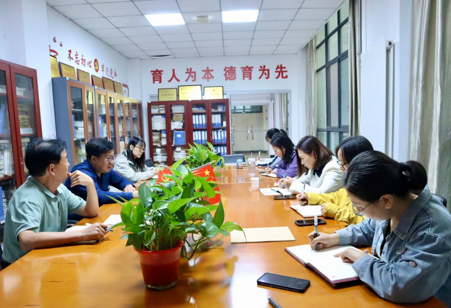 陕服新闻网讯(侯帆)为推动马克思主义学院内涵式发展,全面了解“大思政课”建设现状,9月5日上午,校党委书记王岗、党委宣传部副部长菅建伟到马克思主义学院就大中小学思政一体化建设、新时代立德树人重点任务分解、听议思政课、实践调研等方面进行调研指导。马克思主义学院院长颜毓洁、副院长朱旭及各教研室主任、教学秘书参加本次活动。