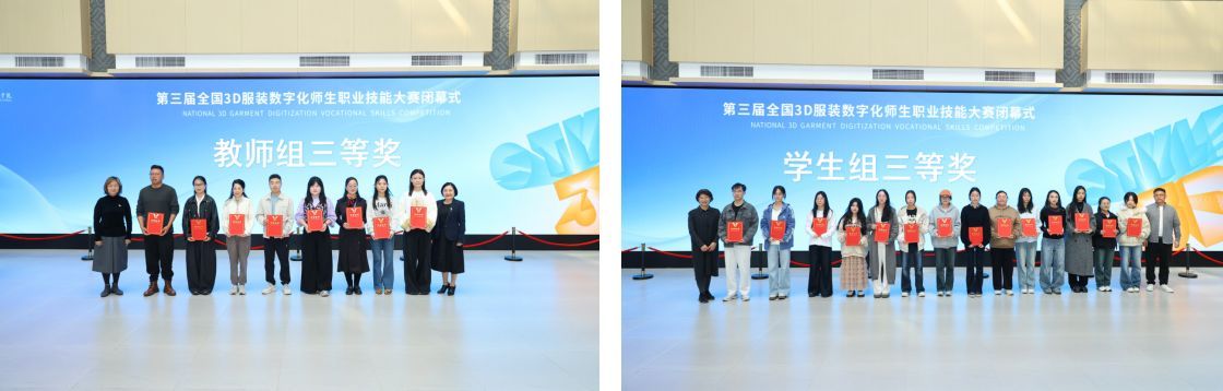 颁奖典礼中,服装设计与工程2201班学生侯嘉汇不仅摘得学生工艺组全国一等奖,又拿下“最佳3D建模设计奖”,成为双料赢家;服装工程系梁盈春老师则在理论考试中得到本次唯一满分的佳绩,获特别表扬。学生工艺组2201班杨佳瑶、2301班徐夏雨获全国三等奖,2301班左敏熙获全国优秀奖;教师组梁盈春老师获创意组全国三等奖,陈宇佳老师获创意组全国优秀奖,徐云峰、张俊花老师获工艺组全国三等奖。