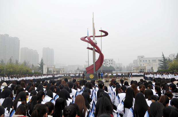 本网讯3月19日清晨,全校师生列队国旗坪四周,举行新学期升国旗仪式。董事长吕明,校长张义明,党委书记胡鸿晓,副校长温小郑、唐明晰,工会主席刘明夫,校长助理张斌崇、吴俊林、罗文谦等领导参加。胡鸿晓主持。