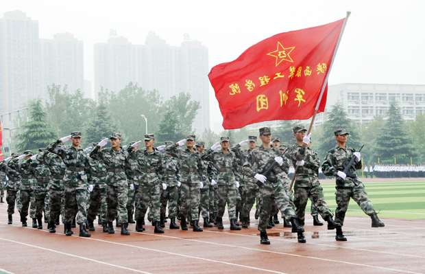 9月9日上午,在霏霏细雨中我校2017年新生军训汇报大会在田径场隆重举行。省政协原副主席张生朝,西安工业大学副校长张君安、原副校长陈俊斌,西安交通大学教授李乐山,西安工程大学教授余鹏,陕西科技大学镐京学院院长贾争现、党委书记刘远、副院长南社社、郭国法,陕西铁路交通学院副院长李虎,我校领导董事长吕明、院长张义明、党委书记胡鸿晓、顾问王鹏飞、副校长唐明晰、教育学院院长吴克隆、副校长吕超、温小郑、工会主席刘明夫等出席。胡鸿晓主持大会。